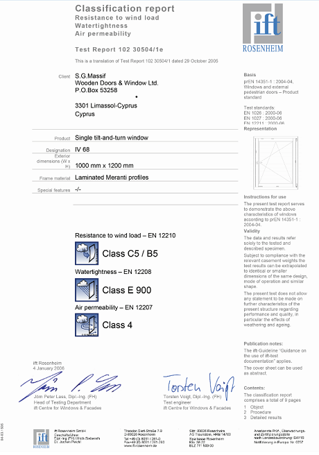 MASSIF is officially certified by ift Rosenheim, one of Europe’s most respected institutes for window and door performance testing. Their evaluation confirms the high performance of our wooden window systems in: